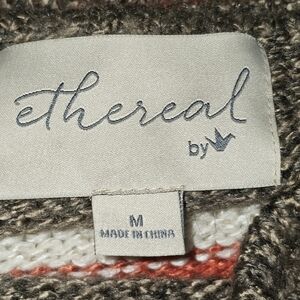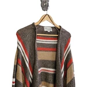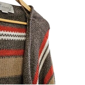 Boho stripe knit fringe open cardigan wool blend size oversized medium