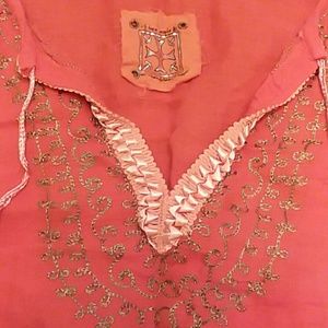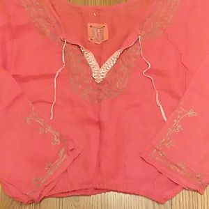 ❤Gorgeous red Bohemian style with embroidery around neckline and on Bell sleeves. Tie at mid level neck line, and crop waist! Another rare find!❤
