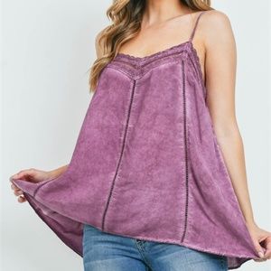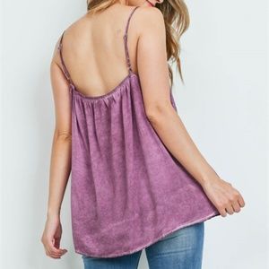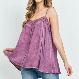 Sleeveless strappy V-neck splice trim detail tunic top.