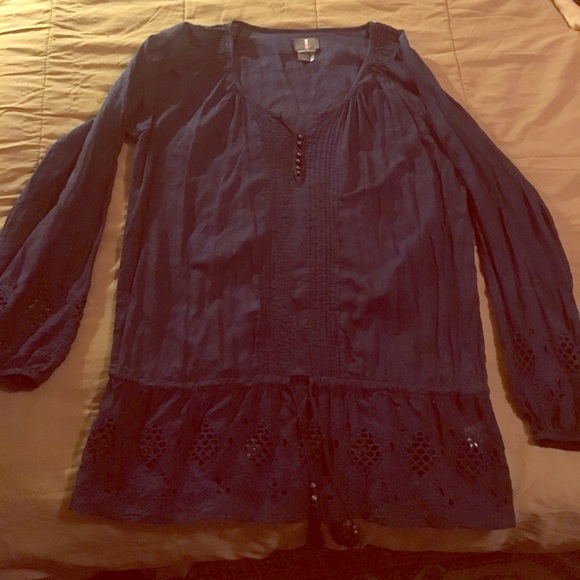 Nice boho style tunic, navy blue with great eyelet accents!
