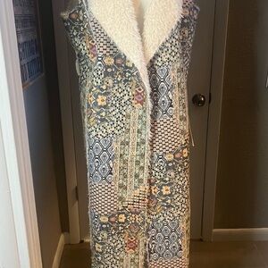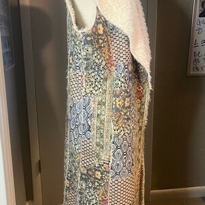 Boho suede patchwork reversible coat vest duster by Paparazzi Biz Sherpa lining