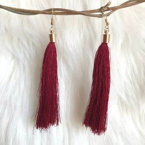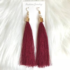 Boho tassel fringe statement earrings, burgundy red wine and gold, NWT!