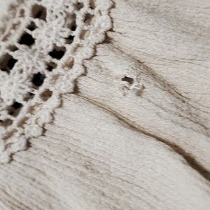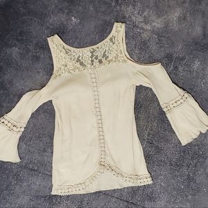 Cream color flowy boho top, so cute!!! See photos, small hole in sleeve, not very visible when wearing because of the flowy design of shirt, would be a easy hidden fix sewing it.👍