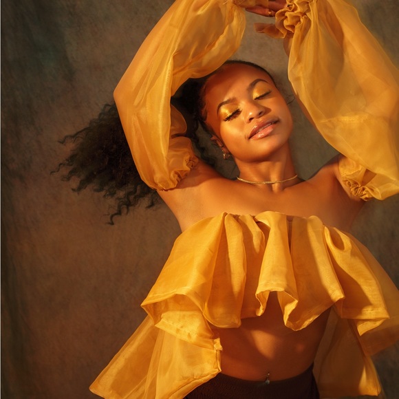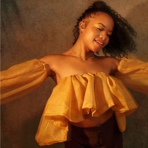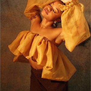 This custom made item ties in the back and is perfect for going out or for a date! The sleeves are not as seen in the picture and will be attached to the blouse.