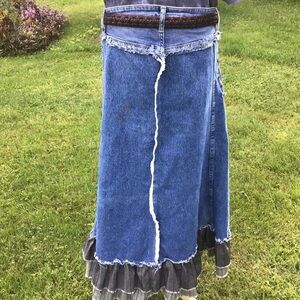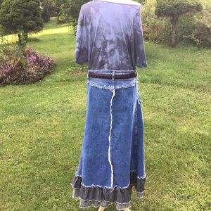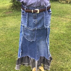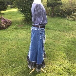 Boho up-cycled denim patch distressed jean maxi skirt / old navy 10 / bu…