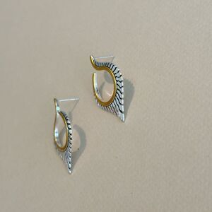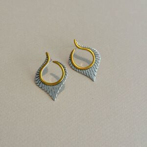 These elegant earrings feature a stunning combination of silver and gold tones, perfect for adding a touch of sophistication to any outfit.