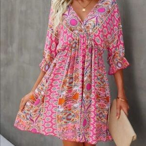 Boho BatwingâSleeveâDressâTopâBlouseâMiniâDress