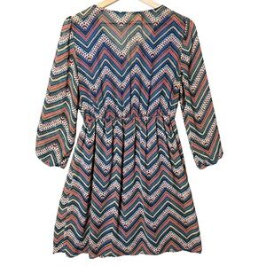 BohoBlu Boutique Womens Chevron Aztec Print Patterned Dress Boho Festival size L