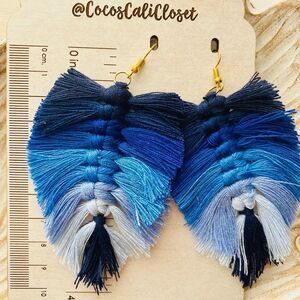 Boho Blue Ombre Macrame Tassel Leaf Drop Earrings NWT are brand new in packaging