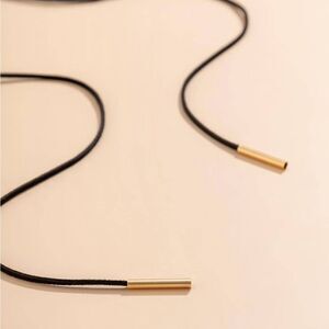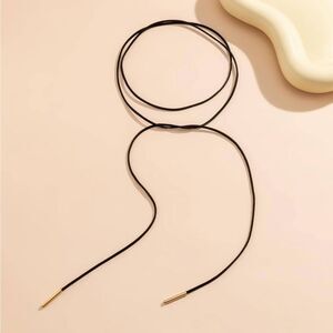 This elegant choker necklace features a sleek black design with gold accents, perfect for adding a touch of sophistication to any outfit.