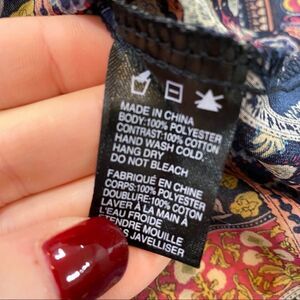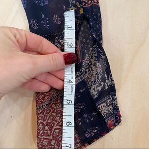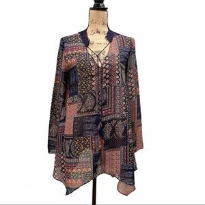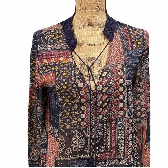 Lightweight long sleeved peasant blouse with crochet detail on the back and fringe tassels. Beautiful deep fall colors. Resonates so much with autumn! Oversized. Slits at cuff.