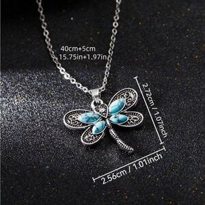 Boho Dragonfly Vintage Imitation Turquoise Pendant Butterfly Chain Necklace