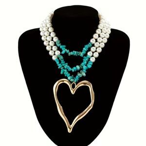✨🆕✨ Boho Exaggerated Heart Turquoise Decor Necklace✨ avail in Red + Blue✨