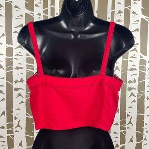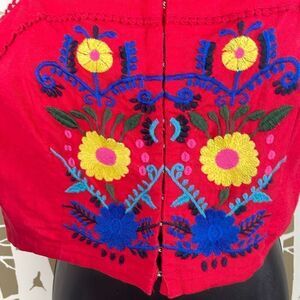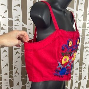 Boho Festival Red Embroidered Floral Cropped Tank Top sz M
