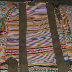 Boho Fold Over Backpack. Multi colored hippie style backpack. Lots of room inside. In good condition!