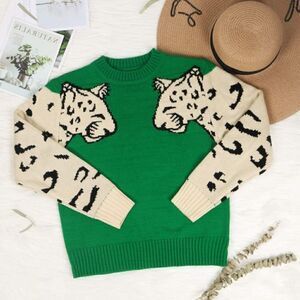 Boho Green Leopard Cozy Sweater