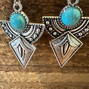 Boho Hippie Vintage Arrow Dangle Wire Earrings, Turquoise Stone, Gift Box