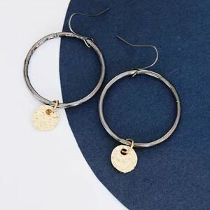 Hoop Earrings Silver tone hoops Gold tone disc NWT