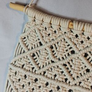 This cream color Bohemian macrame wall hanging measures 24" x 13". In excellent condition. All offers are welcome.