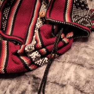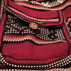 Super cute backpack with drawstring and 2 small front button pockets. Width approx 13 length approx 16.5. Excellent pre-owned condition. Used a few times only.
