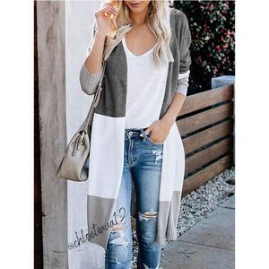 Boho Open Front Cardigan Loose Knit Lightweight Sweater