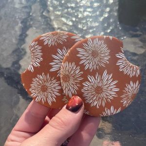 Boho Orange Floral Car Coaster Set | Floral Coaster Set | Boho Car Accessories