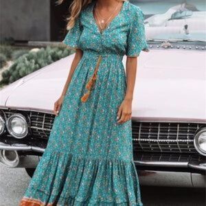 Boho Short Sleeve Loose Maxi Dresses Casual Long Dresses