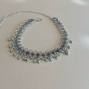 This elegant silver necklace adds a touch of sophistication to any outfit. Perfect for any occasion.