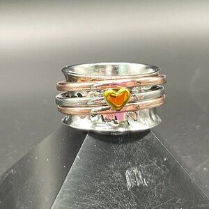 Boho Spinner Ring Tri-Color Floating Heart and Bands #1356