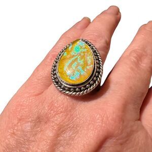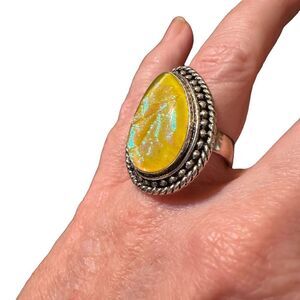 Boho Style Sterling Silver Yellow Opal Statement Ring Size 9