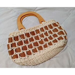 Boho Style Weaved Hand Bag with Wooden Handles