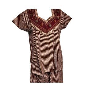 Beautiful, handmade boho/ethnic outfit. Belt included. Material is cotton. There is no size tag, so please see measurements below for fit.