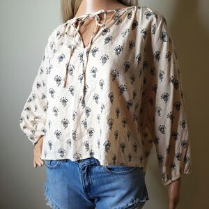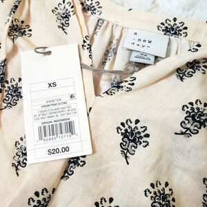 This is an adorable NWT A New Day Blouse that features a high-low silhouette, V-Neck, Paisley patterning, and full length bubble sleeves :) Blouse is in size XS and in perfect shape other than one tiny tiny stain as shown in the last photo.