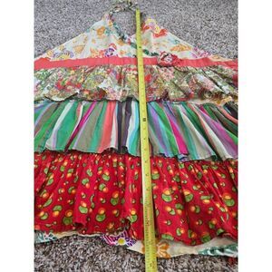 Boho Y2K Multi Print Halter Apron Top Ruffle Layered Festival Size L Hippie