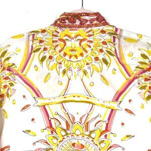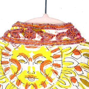 Bohochic Beaded Embellished Tunic Top Women’s SZ L White Orange Ethnic Festival
