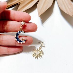 Moon and sun dangle boho earrings in gold tone