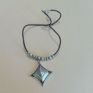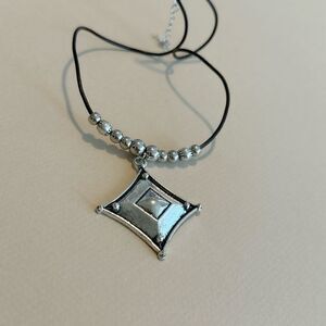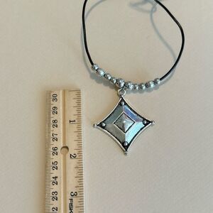 Boho geo pendant black cord necklace in silver tone hardware