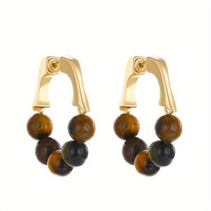 Boho Tiger eye beaded hoop earrings in gold tone hardware
