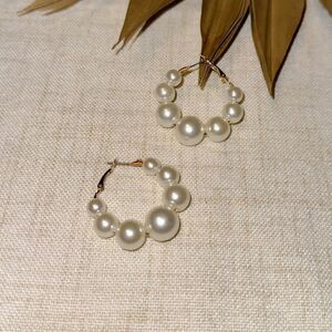 Boho pearl hoop earrings in gold tone hardware