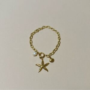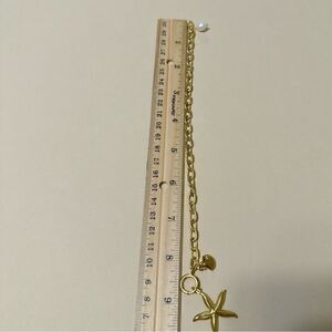 Starfish pearl drop link chain bracelet in gold tone hardware