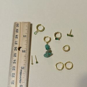 9 pc boho green stone drop rhinestone decor earrings set in gold tone hardware