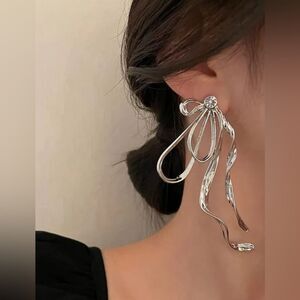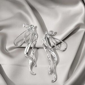Minimalist boho bow twist dangle stud earrings in silver tone hardware