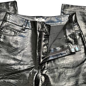 Boii Studios Black Alligator Faux Leather High Rise Straight Leg Pant Women XL