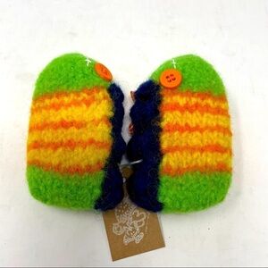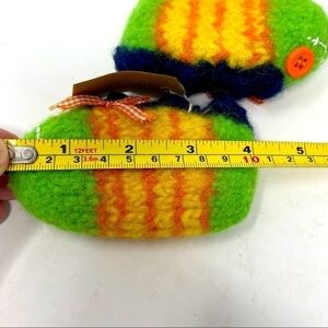 Adorable and cozy, these handmade boiled wool baby booties are perfect for keeping tiny feet warm. Featuring a mix of green, yellow, orange, and blue, they’re soft, unique, and make a lovely gift. New with tag. Unbranded and one of a kind.