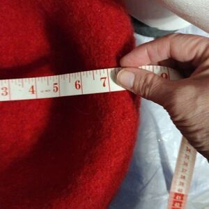 handmade boiled wool hat, red, rolled brim, round top, hat. inside measurements 9"x7"