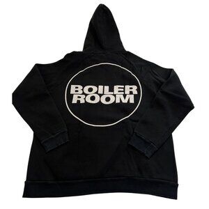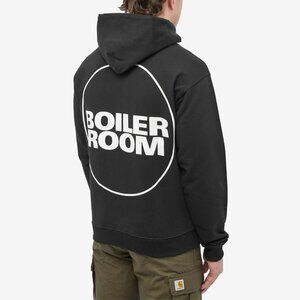 Description from retailer: Boiler Room spreads club culture to the wider world, on screen and through parties, film and video and now even through your favourite everyday essential and the holy grail of streetwear - the black hoody. Slightly oversized, it’s cut from soft French Terry jersey and at both sides is the stamped logo, raised in a rubberised finis