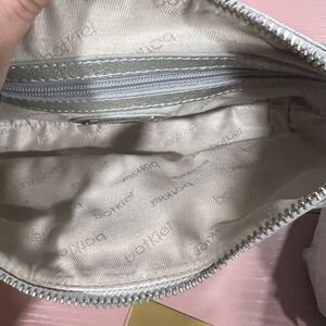 Silk and leather evening bag. sticker still on inner logo and card if authenticity included.