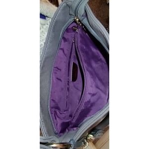 The lining is purple BOLAI signature, easy to clean fabric, & in excellent condition.