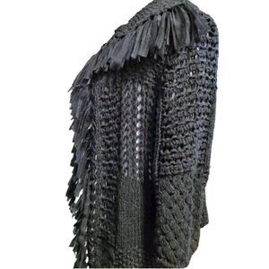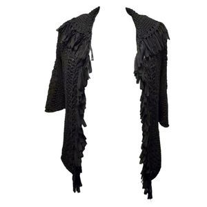 Bold Artsy Goth Jacket Black Knot Macrame w/ fringe collar and front opening