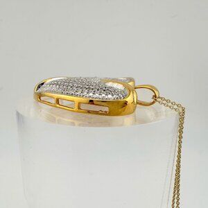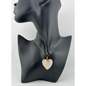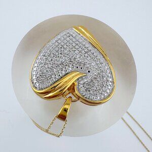 Give her your Whole Heart with this stunning diamond encrusted heart necklace. A beautiful 1.5" Heart with 14kt gold overlay sterling silver setting/ egdes. Natural Diamonds clustered / encrusted to make the full body of the heart. 1.00 ct total carat weight.